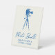 French blue photo booth wedding sign featuring a vintage camera illustration and clean, elegant typography. This customizable tabletop sign invites guests to grab a prop and strike a pose while adding a cohesive European countryside touch to your celebration. Personalize the wording to match your event style and coordinate beautifully with French, Tuscan, or Provence-inspired wedding décor.