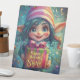 Célébrez la journée spéciale de votre soeur avec cette illustration fantastique et enchanteresse de génome d’anniversaire! Doté d'un gai aux yeux larges et joyeux aux cheveux bleus vifs, d'un casquette aux rayures roses et d'un cadeau joliment emballé qui dit "Bonne soeur d'anniversaire", l'arrière - plan brille de confettis flottants, de rubans et d'une atmosphère d'imaginaire rêveuse, ce qui en fait un choix idéal pour une surprise d'anniversaire chaleureuse et ludique.