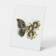 Or flower butterfly with black jewelry orchid, decorated with gold leaves on white background.