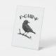 Il s'agit d'une illustration monochromatique de fabrication professionnelle, avec un corbeau perché sur une branche d'arbre, rendu avec une texture mi-teinte distincte pour évoquer une esthétique vintage. Le texte audacieux et stylisé "F-CAW-F", qui est placé en bonne place au-dessus de l'oiseau, offre une touche humoristique qui complète la veine gothique et potentiellement éffrayante ou Halloween du corbeau. La composition globale mêle des éléments de tatouage vintages et foncés avec un design graphique rétro.