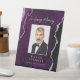 An elegant sign to honor a departed family member at your wedding. A purple watercolor agate design edged with silver faux glitter provides the background. The words "In Loving Memory" appear in silver gray handwriting calligraphy. Easily replace the sample image with a vertical photo of your loved one, and add their name and relationship below in serif font.