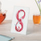 Infinity symbole of continuous stream of red pouring into glass glass glass on white background.