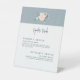 Elevez votre décor mariage avec ce guéridon chic avec les boissons signature de la mariée et du marié. Un petit arrangement de fleurs de cerisiers orne le haut de la carte des boissons, dressé contre un arrière - plan à texture bleu clair.