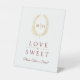 Feuilles dessinés à la main en or avec un texte rouge bordeaux foncé sur un mariage arrière - plan blanc traite la signalisation de table. Personnalisez avec vos propres initiales monogrammes et les mots actuellement dit amour est doux s'il vous plaît prendre un régal. Idéal pour informer les clients de votre service. D'autres articles correspondants sont disponibles. Art original de Sarah Trett exclusivement pour www.mylittleedenweddings.com sur Zazzle.