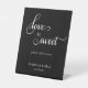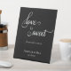 Elevez votre table de desserts avec ce charmant panneau de table mariage, avec l'expression "l'amour est doux" en calligraphie élégante, invitant vos invités à profiter des plaisirs exposés. Facilement personnalisable avec vos noms et votre date de mariage. Son design noir et blanc intemporel ajoute du raffinement à tout thème, ce qui en fait un accent parfait pour votre station de desserts ou table de faveur.