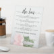 Ce panneau de table est une excellente façon de faire connaître à vos invités le menu du bar à votre réception de mariage. Il présente un design simple mais élégant avec une photo d'un seul rose rose pâle à long tige réfléchissant dans un bassin d'eau avec vagues et ondulations. Le titre est écrit en calligraphie de script élégante et dit : The Bar. Il y a de la place pour le menu des boissons ainsi que les noms du couple et de la date du mariage.
