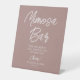 Mimosa Bar Cheers Modern manuscrit Script Rose Gold Mariage Event Tabletop Signs présente le texte "Mimosa Bar" dans élégante typographie de script de calligraphie blanche moderne. Parfait pour les mariages, la douche nuptiale, la fête d'anniversaire, les célébrations d'anniversaire et plus encore. Conçu par Evco Studio www.zazzle.com/store/evcostudio