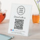 Facilitez à vos clients la tâche de suivre, de se connecter et d'interagir avec votre marque en utilisant ce panneau de pied de table personnalisé avec un code QR « Connectez-vous avec nous ». Conçu avec un fond blanc épuré, une typographie moderne, un espace pour votre logo et vos identifiants de réseaux sociaux Facebook et Instagram, ce panneau de table professionnel crée un moyen invitant et sans contact pour que les clients accèdent à votre entreprise en ligne. Zazzle génère automatiquement le code QR à partir du site web ou du lien que vous fournissez, garantissant une configuration fluide et une expérience de numérisation fiable. Le code QR visible permet aux visiteurs d'accéder instantanément à votre site web, à vos réseaux sociaux, à votre menu, à vos services ou à votre page de réservation en un seul scan - sans avoir à taper. Les icônes de réseaux sociaux et votre identifiant aident à augmenter vos abonnés tout en renforçant la reconnaissance de la marque au point d'interaction. Parfait pour les comptoirs de vente au détail, les salons, les cafés, les restaurants, les cliniques,