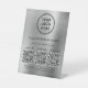 Moderne et professionnel, socle de table en faux métal argenté brossé pour votre entreprise. Téléchargez votre logo et 3 codes QR pour que les clients les scannent pour paiement, informations, liste de vos produits, services, prix, etc. Étiquetez vos codes QR et ajoutez le nom de votre entreprise, numéro de téléphone, adresse, site web ou autres informations en typographie simple.