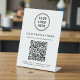 Panneau de piédestal de table moderne pour votre entreprise. Créez facilement un code QR lié à votre site Web pour que les clients puissent rechercher une liste de vos produits, services et prix. Ajoutez votre logo, votre nom commercial, votre numéro de téléphone et votre adresse de rue dans une simple typographie.
