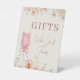 Love in Bloom themed gifts table pedestal sign designed for bridal shower celebrations. Created to guide guests with a romantic, floral look that coordinates beautifully with elegant shower decor. Ideal for bridal showers, engagement parties, and wedding shower gift tables. Editable text. Clean print-ready layout.