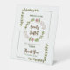 Essayez ce panneau de signalisation de fête de mariage avec un thème floral rose et des feuilles vertes en cercle et partagez vos commentaires avec nous.