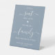 Choisissez un siège, pas un côté. Nous sommes tous Famille une fois le noeud noué ! Calligraphie simple mais élégante, ce panneau mariage de bienvenue dispose d'élégantes calligraphies en bleu poussiéreux moderne. Customisez ce panneau de mariage élégant avec vos noms et votre date!
