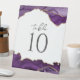 Elégant Mariage d'âge violet Cartes Numéro de table. Graphiques de parties scintillant en or Faux. Couleurs de police de script avec une police de nom serif facile à lire. Facile à adapter à vos besoins mariages. Cartes de table mariage personnalisées.