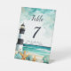 Beau numéro de table mariage avec un phare noir et blanc nautique, étoiles de mer et coquillages. Parfait pour un mariage. Les mots peuvent être changés en fonction de vos propres détails ou exigences
