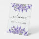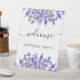 Un signe de bienvenue pour une fête. Un arrière - plan blanc, décoré de fleurs de lavande aquarellée. Personnalisez et ajoutez votre nom. Lettres noires.