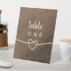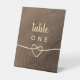Élégant, simple, rustique mariage numéro de table signe de table avec faux coeur de corde or et script de calligraphie moderne.