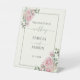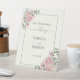 Affiche de bienvenue Mariage rose et verte. Cet élégant panneau d'accueil de mariage est orné d'un arrière - plan en ivoire doux, agrémenté de délicats flancs roses et sauge. Une combinaison de polices serif classique et de polices de script fluide crée une sensation romantique et intemporelle. Une fine bordure verte à la sauge encadre le design, ajoutant une touche simple mais raffinée. Des roses luxuriants et des feuilles eucalyptus décorent gracieusement les coins supérieur gauche et inférieur droit. Parfait pour un jardin, une mariage rustique ou classique, le style est doux, aéré et accueillant.