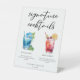 Cette enseigne de style côtier chic à siroter des cocktails sur pilotis est dotée d'une simple typographie noire au-dessus de 2 boissons balnéaires et de leurs ingrédients pour votre bar de mariage sur la plage. Un joli Blue Lagoon et Dirty Shirley ou un dessin à la cerise ajoutent une touche cool à votre menu du bar. Complétez avec les noms du couple et la date de leur réception.