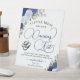 Ce panneau sur pied amusant invitera vos invités à prendre une paire de tongs gratuites pour qu'ils puissent danser toute la nuit lors de votre réception de mariage. Le beau design comprend des roses aquarelles peintes à la main dans des nuances de bleu poussiéreux, de marine et d'indigo, ainsi que des feuilles d'eucalyptus et de la verdure de jardin. Le panneau indique : Un petit traitement pour vos pieds de danseur. Si vos pieds sont fatigués et douloureux, glissez-les là-dedans et dansez encore ! Avec les compliments du nouveau M. & Mme... " Il y a un graphique de clip art mignon représentant une paire de tongs ou de sandales, et un espace pour vos noms. Une façon merveilleuse d'ajouter de l'amusement et du confort à la célébration de votre jour spécial !