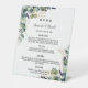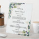 Un fond blanc chic. Décoré de feuilles d'eucalyptus à l'aquarelle verte, de brindilles, de verdure, de feuilles dorées fausses. Ajoutez vos noms et menu du dîner.