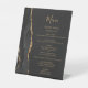 Le bord gauche de cet élégant panneau de table de menu mariage moderne est doté d'une bordure en aquarelle noire ornée d'une parties scintillant en faux or. Le mot "Menu" apparaît dans un script d'écriture manuscrite de couleur or sur un arrière - plan noir en ardoise. Personnalisez le texte restant avec les noms du couple, la date du mariage et les détails du menu.