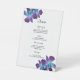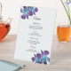 Panneau du mariage du menu du Dendrobium bleu violet et turquoise. Un menu mariage simple qui présente une belle variété d'orchidées appelée dendrobium bleu. Il est turquoise / turquoise dans la couleur associée à violet et violet royal violet. Un grand choix de fleurs pour le thème de la couleur mariage paon.