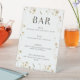 Le panneau de socle mariage moderne et boho pour votre menu "bar" est doté d'une police audacieuse et contemporaine avec des fleurs sauvages délicats dans des tons doux de rose, jaune, violet, ivoire et vert. Personnalisez avec votre menu boisson mariage avec le modèle facile à éditer avec une police de script romantique et une police serif moderne. Consultez les articles correspondants dans les collections "Fêtes des mariées" et "Fleur sauvage aquarelle".