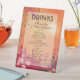 Sunset Serenade Pedestal Drinks Menu - Design entièrement personnalisable Sirotez un verre en style avec ce menu de boissons sur pied de la collection Sunset Serenade, conçu pour éblouir vos invités et élever votre configuration de bar. Doté du même ciel d'aquarelle doré et rose doux, d'un skyline silhoué et de motifs floraux luxuriants en corail, crème et turquoise, ce guéridon apporte chaleur, romantisme et visibilité à votre célébration. 🍸 ✨ Que vous serviez de la bière Bliss Martinis ou de la bière Blé avec tranche d'orange, ce panneau présente vos sélections de cocktails, spiritueux, vins et bières avec une typographie moderne et propre qui s'opère sur fond de soleil. Entièrement personnalisable avec vos noms, votre date et votre gamme de boissons - du Ginger Basil Smash au Sparkling Rosé - il est parfait pour les réceptions, buffets ou stations de bar. En complément de la suite Sunset Serenade, ce menu de boissons est plus que fonctionnel, c’est un souvenir de votre histoire d’amour, versé dans chaque verre.