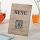 Signe De Table Menu Motif en bois rustique QR Code noir