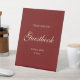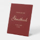 Minimal Script Wine Red "Sign Our Guestbook" Pedestal Sign. A simplistic and elegant "please sign our guestbook" wedding pedestal sign. Personalize with bride and groom names, and your wedding date.