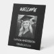 Modern black and white graduation pedestal sign designed to welcome guests with a clean and elegant presentation. Featuring a minimalist layout and bold typography, this sign is ideal for graduation parties, receptions, and entry displays. A stylish décor piece that complements modern and neutral graduation celebrations.