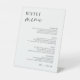 Perfect for a wedding reception or pre-wedding event, this modern minimalist buffet menu sign helps guests easily navigate your food stations. The pedestal format and simple design provide a clean, organized display for listing your meal offerings. Customize with your dish names or food categories to suit your event.