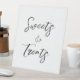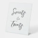 Pour votre mariage, ce panneau moderne de sucreries et de friandises en noir et blanc présente un script de calligraphie en lettres noires à la main qui dit "Sweets & Traitements". Conçu par Susan Coffey.