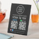 Simple moderne table dessus noir panneau de piédestal pour votre entreprise avec Venmo et Cash App codes QR pour les clients à scanner pour les paiements. Ajoutez votre logo, vos codes QR, votre nom d'entreprise, votre numéro de téléphone et votre site Web dans une simple typographie blanche. Ajoutez vos identifiants instagram et facebook pour que les clients puissent vous suivre sur les médias sociaux.