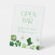 Modern Open Bar Sign with green shamrocks for a St. Patrick's Day themed Bridal Shower: