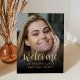 Ce panneau d'accueil personnalisé de fête de 21e anniversaire comprend la photo, le nom et l'anniversaire personnalisés de l'invité d'honneur, ainsi que le mot "bienvenue" dans un élégant script de calligraphie couleur or. Un écran sombre permet de faire apparaître le texte. Un excellent moyen de célébrer quelqu'un qui a 21 ans !
