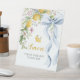 Invite guests to enjoy a sweet takeaway with this Please Take a Favor Lemon Bridal Shower Pedestal Sign, designed to complement a Main Squeeze citrus bridal shower theme. Featuring soft watercolor lemons, delicate floral accents, and an elegant blue ribbon, this sign adds a polished and welcoming touch to your favor table. Ideal for summer, garden, Mediterranean, or outdoor bridal showers, it blends effortlessly with elegant and playful décor alike. The clean, readable layout ensures your message stands out while maintaining a refined look. Fully customizable and beautifully coordinated with the full She Found Her Main Squeeze collection, this sign completes your celebration with style.