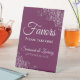 Ce joli panneau de table est conçu pour invitation vos invités à prendre une faveur de mariage. Il présente une conception simple mais élégante magenta ou cassis violet et argent avec des lettres de script fantaisie et délicats boucles et tourbillons de fausse feuille dans les coins. Le panneau dit : Faveurs, prenez-en une ! Il y a de la place pour vos noms et la date du mariage ci-dessous.