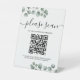 Design moderne et élégant imprimé Chic Greenery Eucalyptus Programme de mariage Feuille QR Code Pedestal Signal qui peut être customisé avec votre texte. Cliquez sur le bouton "Customiser" et utilisez notre outil de conception pour modifier ce modèle. Découvrez le magasin Graphic Art Design pour d'autres produits qui correspondent à ce design !