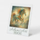 This artwork showcases a majestic horse rendered in a luminous, fantasy-inspired digital painting style. The horse’s form glows with metallic hues of emerald green and molten gold, blending seamlessly into one another like liquid light. Its flowing mane and tail appear wind-swept and flame-like, creating a sense of motion and vitality. The background is softly abstract, with swirling mist and diffused golden light that enhances the ethereal atmosphere. The smooth gradients, high contrast highlights, and painterly textures give the piece a surreal, almost celestial presence. The composition emphasizes strength, grace, and elegance, making it a striking statement piece perfect for tabletop display décor.