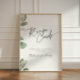 Panneau de carte à recette avec feuilles eucalyptus pour une Fête des mariées verte. Conçu avec une touche contemporaine, ce décor personnalisable ajoute une touche d'élégance à votre célébration. Des invitations assorties, des cartes d'enceinte et d'autres panneaux sont également disponibles dans cette collection.