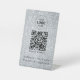 Un panneau de table noir moderne et simple qui permet à vos clients, clients et invités de se connecter facilement à votre réseau WiFi. Téléchargez votre code QR et votre logo, et ajoutez d'autres détails comme votre nom de réseau et votre mot de passe en lettres blanches.
