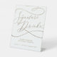 Cette signature mariage de calligraphie dorée romantique signe de piédestal est parfait pour un simple mariage. Le design classique moderne comprend des tourbillons fantaisistes et des fleurs fantaisistes avec une magnifique typographie de feuille d'or en faux champagne. Personnalisez le panneau avec les noms du couple et la date du mariage. Remarque : Ce design ne comporte pas de véritable feuille d'or. C'est un graphisme de haute qualité fait pour ressembler à du papier doré.