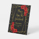 Or et noir Quinceañera avec des roses rouges traditionnelles vibrantes et typographie classique