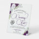 Ce panneau de piédestal amusant permettra à vos invités de prendre une paire de tongs gratuits pour qu'ils puissent danser la nuit à votre réception de mariage. La belle décoration comprend des roses d'aquarelle peints à la main dans les tons violets, lavande et prune, ainsi que des feuilles d'eucalyptus et des jardins verdoyants. Le panneau dit : Un petit régal pour vos Pieds de Danse. Si vos pieds sont fatigués et douloureux, enfilez-les et dansez un peu plus ! Les compliments du nouveau M. & Mme..." Il y a un joli clip graphique d'une paire de tongs ou de sandales, et de l'espace pour vos noms. Merveilleuse façon d'ajouter plaisir et confort à la célébration de votre journée spéciale!