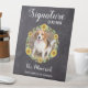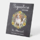 Signature Boissons de vos animaux de compagnie! Inclure votre meilleur chien, meilleur chat et tout animal de compagnie dans votre mariage avec son bar à boissons signature pour vos invités. Parfait pour les amoureux de les chiens, et un bar spécial chien sera un succès à votre mariage. Simple ardoise de tableau rustique avec cadre de tournesol et feuilles de verdure. Customisez ce signe mariage animal de compagnie avec votre chien, chat, chiot ou chaton photo préférée, nom et signature boisson!. DROIT D'AUTEUR © 2020 Judy Burrows, Black Dog Art - Tous droits réservés. Rustic Pet Mariage Signature Boire Tournesol Photo Piédestal Signal
