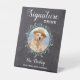 Signature Boissons de vos animaux de compagnie! Inclure votre meilleur chien, meilleur chat et tout animal de compagnie dans votre mariage avec son bar à boissons signature pour vos invités. Parfait pour les amoureux de les chiens, et un bar spécial chien sera un succès à votre mariage. Tableau noir simple mais rustique avec feuilles eucalyptus. Customisez ce signe mariage animal de compagnie avec votre chien, chat, chiot ou chaton photo préférée, nom et signature boisson!. DROIT D'AUTEUR © 2020 Judy Burrows, Black Dog Art - Tous droits réservés. Rustic Pet Signature Boissons Chien Mariage Bar Signal Piédestal