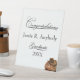 The image of a cowboy hat and lasso resting on a bale of hay provides a definite Western flavor to this design for a pedestal sign. Place the sign on a registration table, a refreshment table or put one on each table at the party. The name and date texts are easily changed by using the template. Selecting “Personalize this design” offers you several edit options to easily change the text (wording, plus type font, color, size, position) and to edit the design elements. You may also want to scroll down to the section “Transfer design to a product” for a few suggestions about other items this design can be used on. See Options for several available sizes.