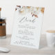 Boisson à fleurs rustique mariage panneau de guéridon avec fleurs de chute d'aquarelle et feuillage dans les tons d'ivoire, crème, marron et rouille orange. L'élégant design floral d'automne est complété par un script de calligraphie moderne. Personnalisez le panneau du menu boisson mariage avec les options de boisson de votre mariage. Le panneau du menu des boissons florales d'automne est parfait pour présenter à votre mariage de automne, dîner de répétition, douche nuptiale ou événement spécial. Conçu pour coordonner avec notre collection Rustique de mariages floraux d'automne.